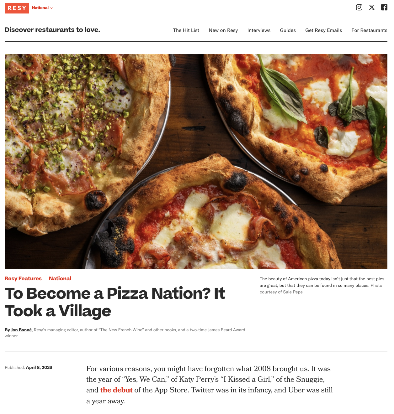Sale Pepe Featured in Resy's National Celebration of American Pizza