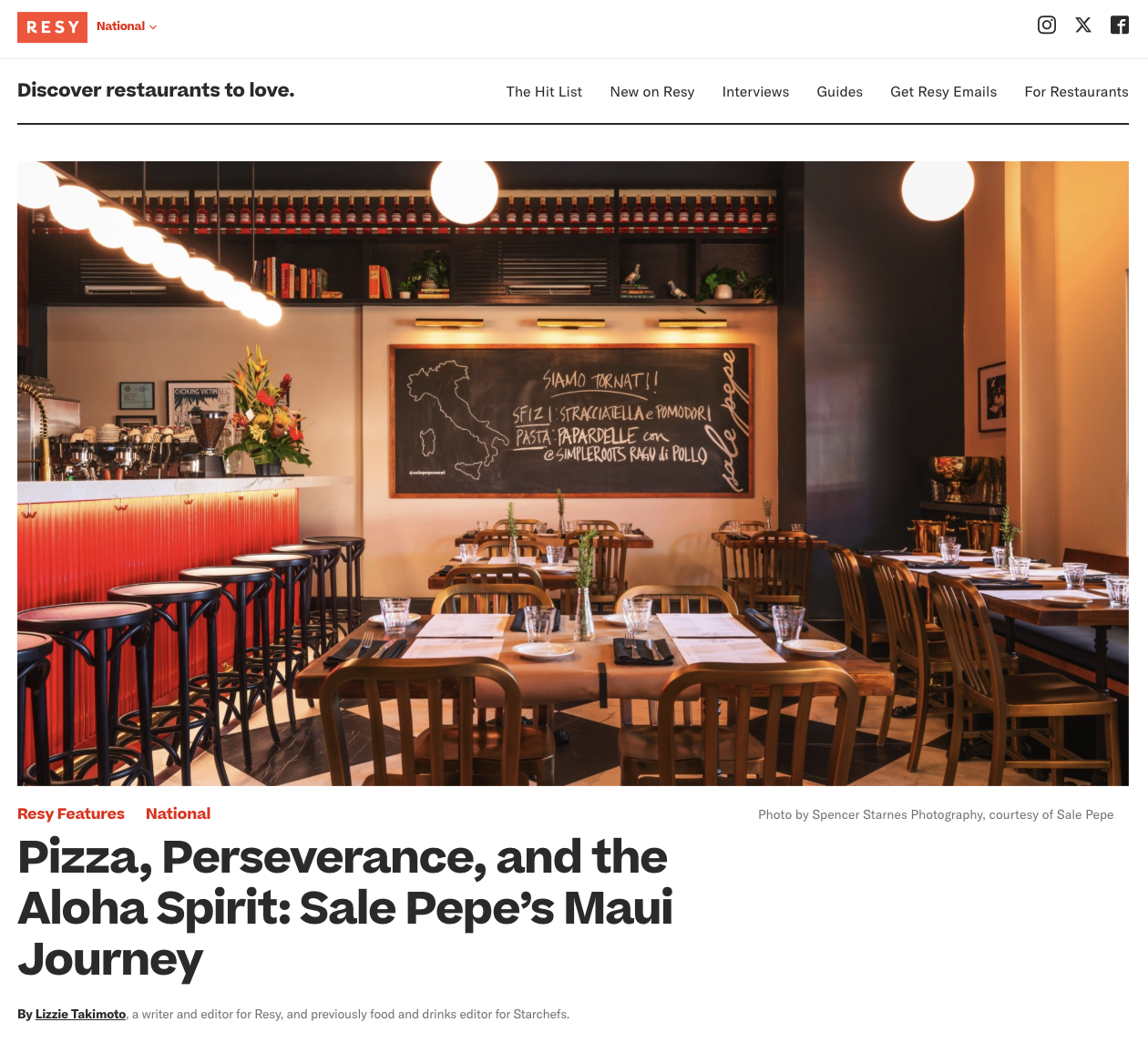 Resy sat down with Qiana and Michele Di Bari for a deep dive into the story behind Sale Pepe — from Michele's roots in Milan and the lessons learned at Brooklyn's legendary Franny's, to the 2023 Lahaina wildfire that destroyed everything they'd built, and the remarkable community-fueled comeback that made Sale Pepe the first restaurant on the island to rebuild and reopen. Writer Lizzie Takimoto traces a decade of dough craft, aloha spirit, and the kind of neighborhood hospitality that keeps people coming back — and that had the community raising $100,000 to make sure they did.